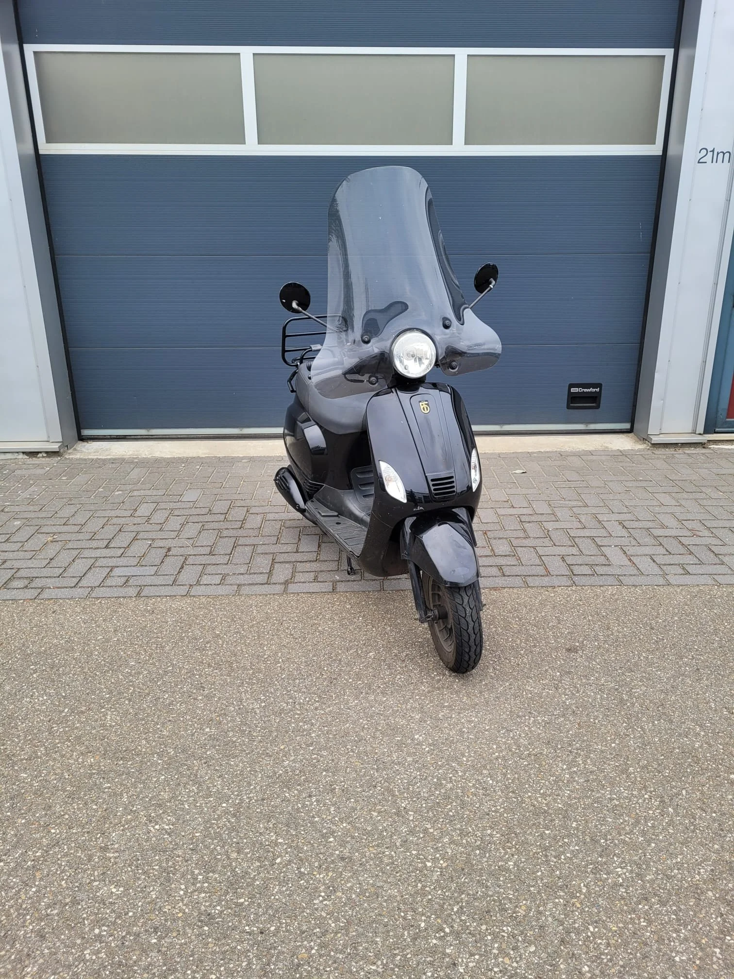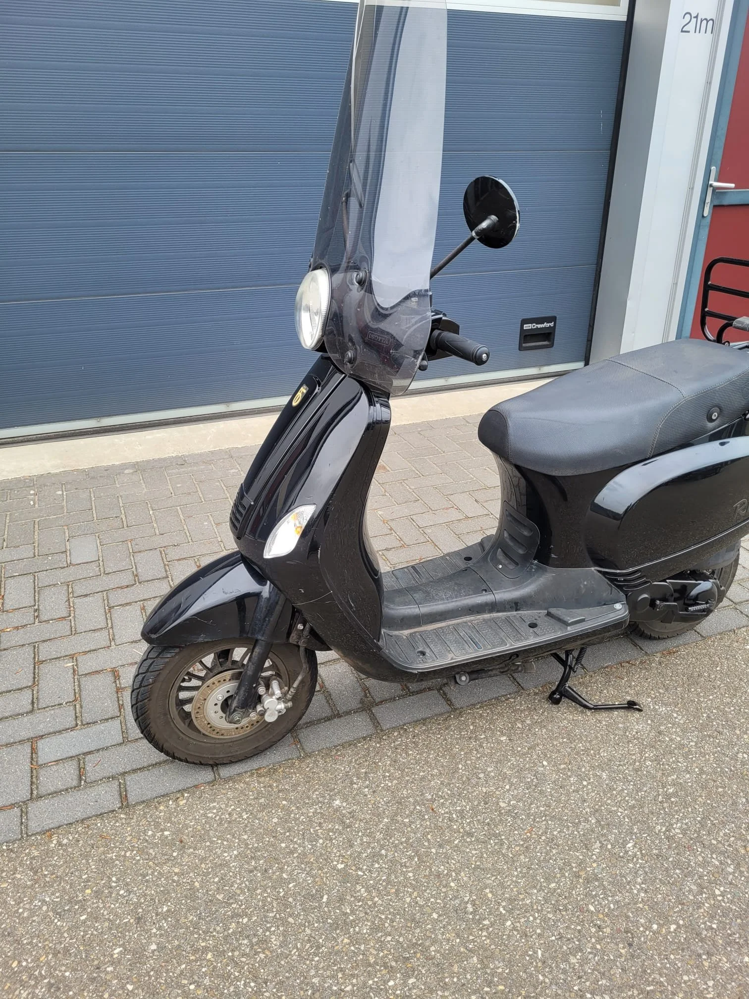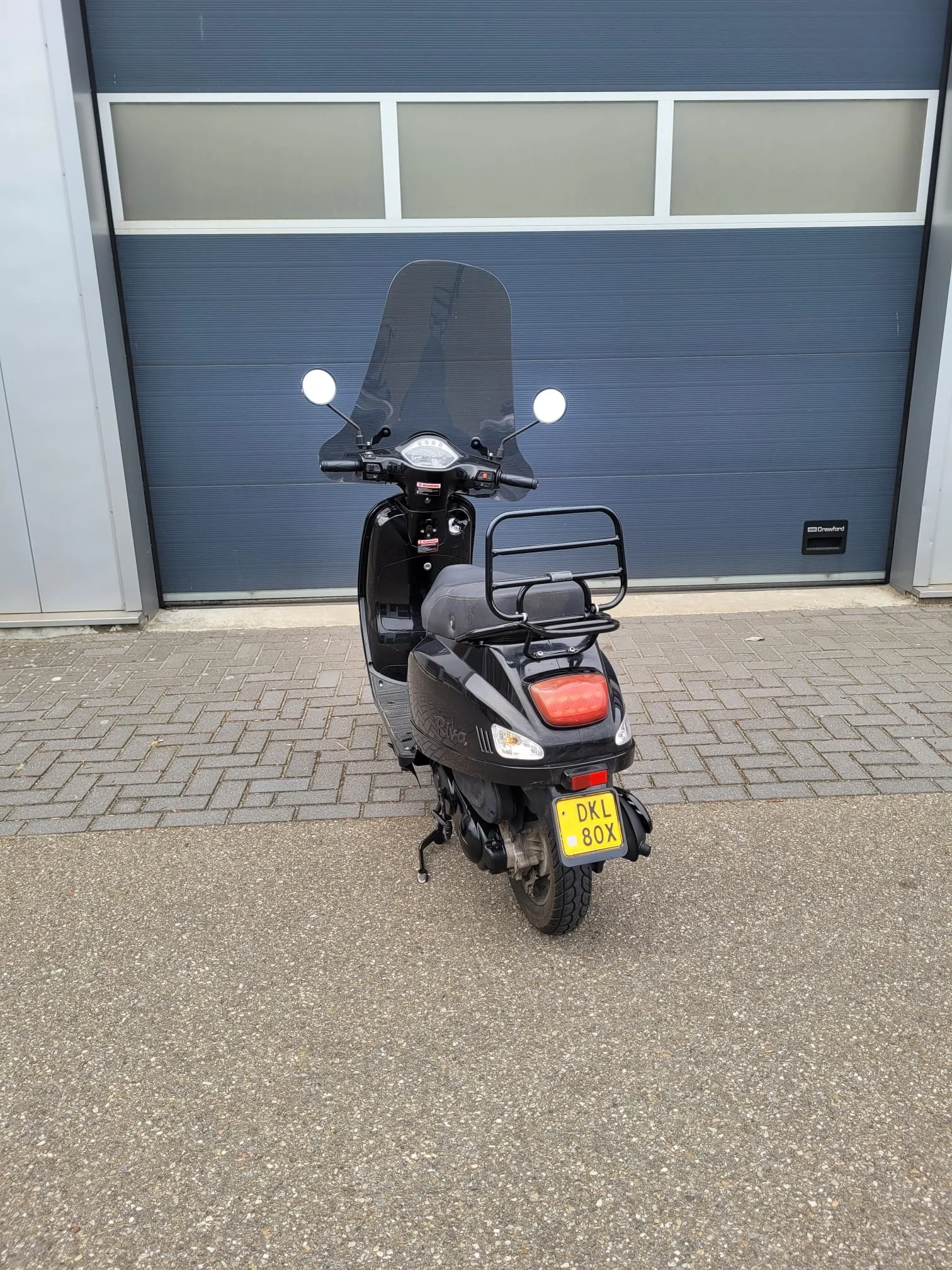 Een nette BTC Riva scooter in de kleur zwart. De scooter is gebruikt, maar in goede staat. Ideaal voor woon-werkverkeer of korte ritjes in de stad. Zie foto's voor details. Er is schade aan de treeplank.